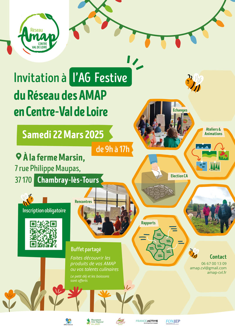 Affiche et programme conçu pour l’Assemblée Générale 2025 du Réseau des AMAP Centre-Val de Loire