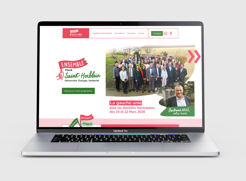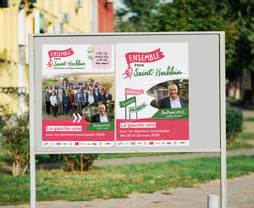 J’ai accompagné le parti Ensemble pour Saint-Herblain dans la création et la mise en œuvre de sa communication print et digitale jusqu’à sa victoire au premier tour des élections municipales 2026 de Saint-Herblain.